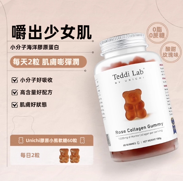 ⭐ Unichi ⭐ 玫瑰膠原蛋白小熊軟糖 🧸肌膚彈潤🧸 60粒